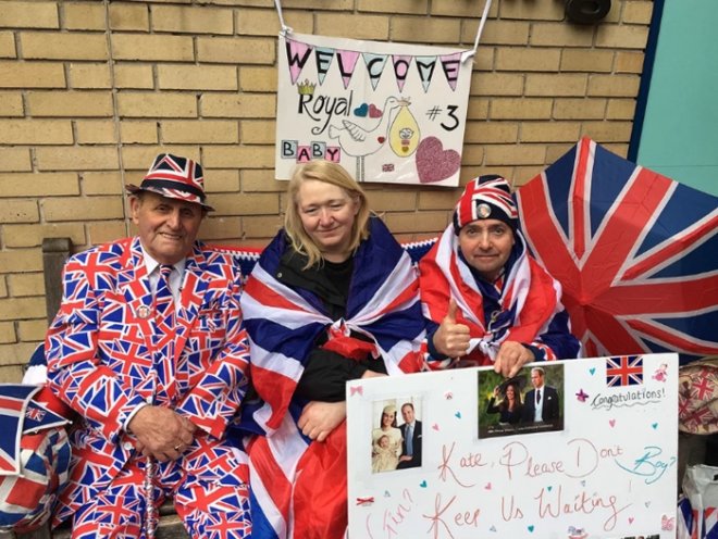 Birçok kraliyet hayranı, ilk kamu görünümü için orada olacaklarını garanti etmek için dışarıda kamp kurdu.