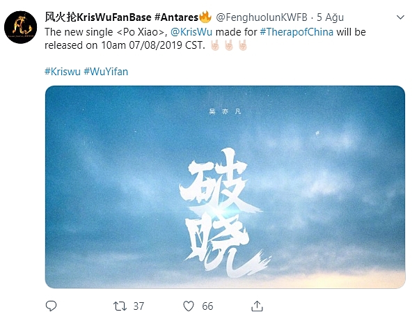 Kris Wu’nun yepyeni şarkısı “Dawn” yayınlandı. Sözleri, bestesi, düzenlemesinin Kris Wu’ya ait olduğu “Dawn” isimli şarkı, 7 Ağustos Çin Sevgililer Günü’nde yayınlandı. KRIS WU Turkey’nin Türkçe’ye çevirdiği şarkının sözlerinin ilk bölümü ise şu şekilde: