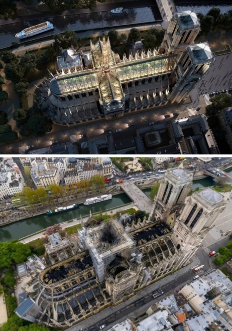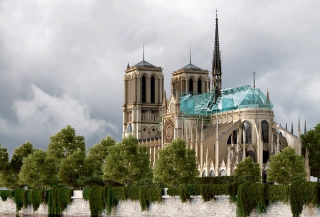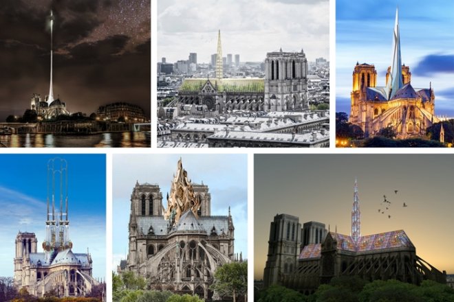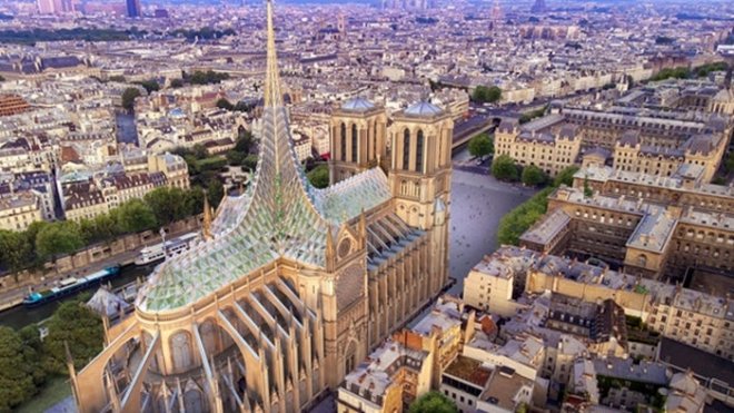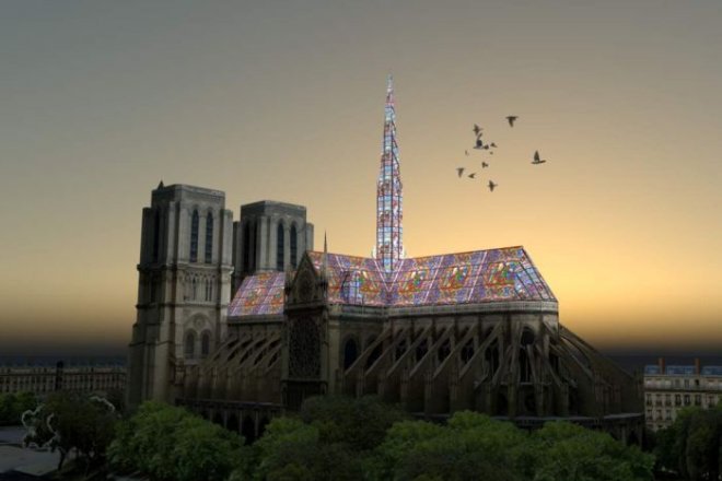 Geçtiğimiz Nisan ayında büyük bir yangın sonucu kulesi ve çatısı çöken Notre-Dame Katedrali'nin restorasyonu için ünlü mimarlar tasarımlarını bir bir açıklamaya başladı. Bu tasarımlar arasında cam, aştın alevler ve bir ışık demetinden oluşan çılgın projeler yer alıyor.