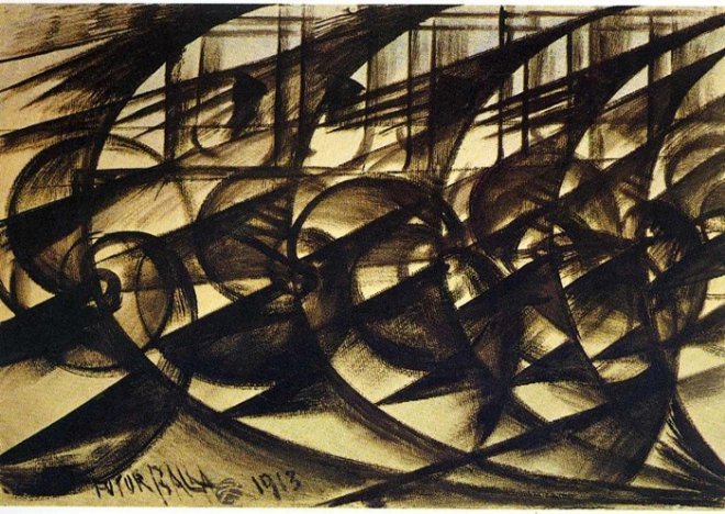 Yeni bir dünya için yeni bir sanat öneren Fütürist manifestolarında, yeni sanat tam anlamıyla tarif edilmese de, geçmişin sanatıyla olan tüm bağların koparılması önerilir, ancak yerine ne konacağı açık değildir. Teknolojiye, hıza, dinamizme ilgisini biçimsel olarak kentsel ve endüstriyel temalara, araba, tren, uçak gibi hareketli konulara aktaran Fütürizmde, genç sanatçıların lideri olan ressam ve heykeltraş Umberto Boccioni, “Fütürist Resim: Teknik Manifesto”da, sanatçının evrensel dinamizm içinde tek bir anı resmetmek yerine, dinamik algıyı görsel kılabilmeyi amaçladıklarını dile getirmiştir.