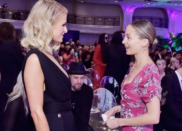 Paris Hilton 20 milyon dolarlık nişan yüzüğü ve siyah Philipp Plein kemerli elbisesiyle göz kamaştırırken, Nicole Richie natürel tonlardaki makyajı ile doğal bir görünümü tercih ederek, pembe çiçekli elbisesini Jimmy Choo aksesuarları ile tamamladı.