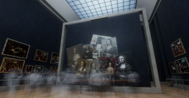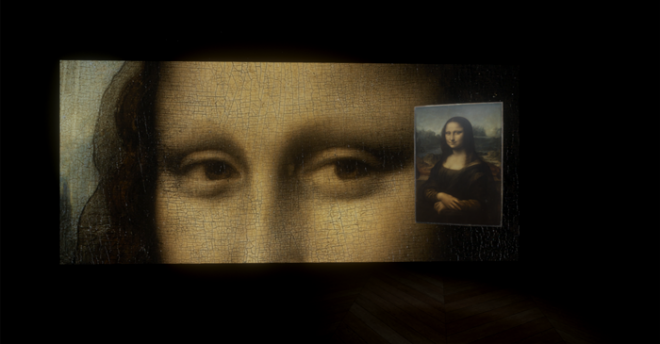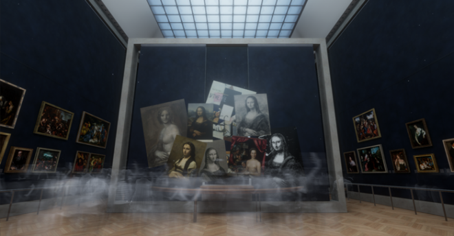 Yedi dakikalık sürükleyici deneyimin başlangıcında kullanıcılar, VIVE’ın en yeni VR başlığı VIVE Cosmos aracılığıyla kendilerini Mona Lisa’nın her daim sergilenmekte olduğu Louvre’daki Salle des États salonunda buluyor. Kullanıcı ilk başta, tablonun önündeki seyirci kalabalığının arkasında kalıyor.