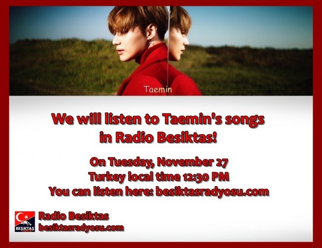 We will listen to the songs of Taemin, one of the main dancers and vocals of the South Korean band SHINee, in Radio Beşiktaş, on Tuesday, November 27 at Turkey local time 12:30 PM. Here you can listen to the broadcast: “besiktasradyosu.com”