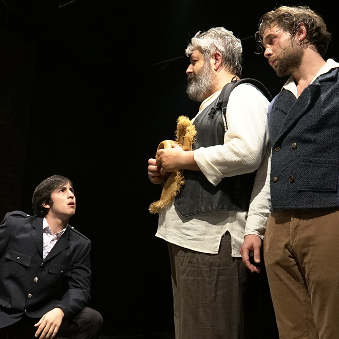 Yücel Erten’in sahnelemesi, absürd sınırlarda dolaşan bir komedi yaklaşımıyla, izleyiciyi canlı müzik eşliğinde bir yol hikayesinin yolcularından biri yapıyor.