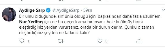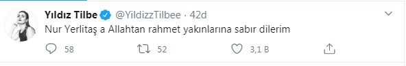 Ajda Pekkan, Bülent Ersoy, Deniz Seki, Seda Sayan, Nilüfer, Erol Evgin, Işıl Reçber ve daha birçok ünlü isim Nur Yerlitaş'ın ölümünden duyduğu üzüntüyü sosyal medyadan dile getirdi. Ünlü dostları Nur Yerlitaş için sosyal medyada bu mesajları paylaştı: