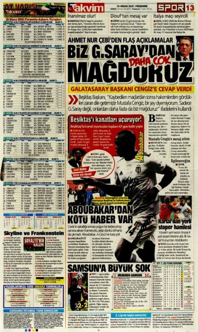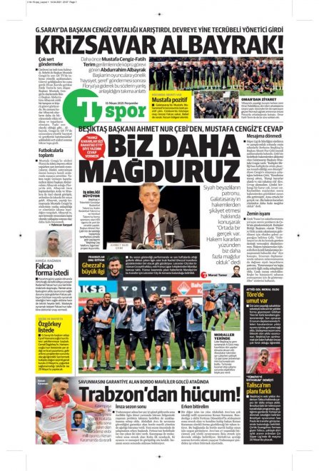 İşte 15 Nisan Perşembe günü Beşiktaş manşetleri: