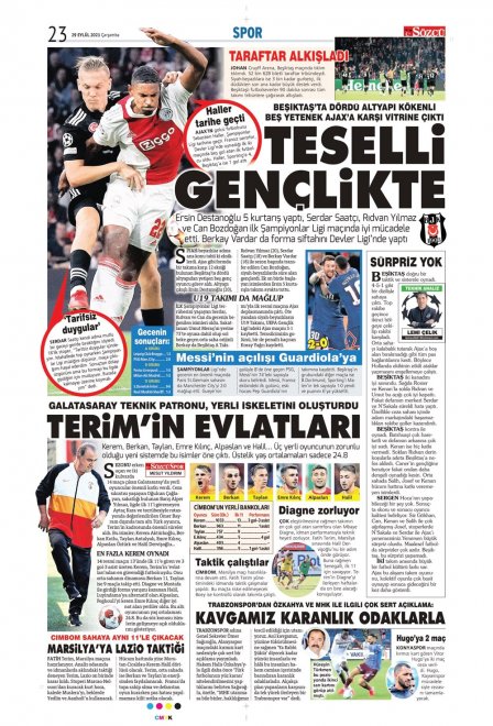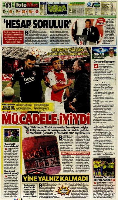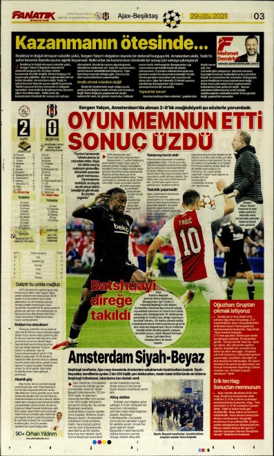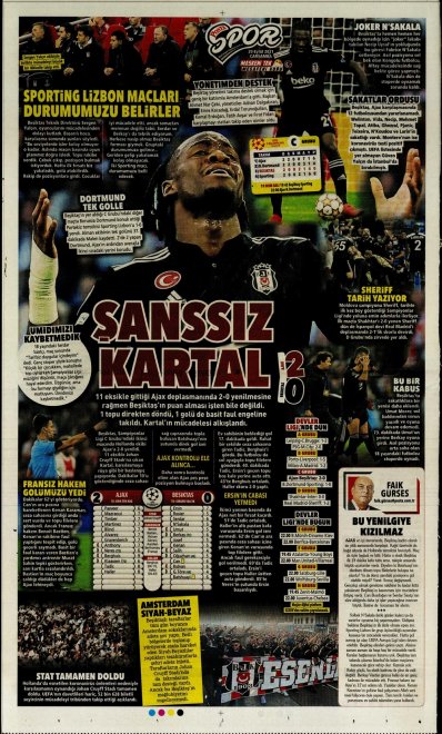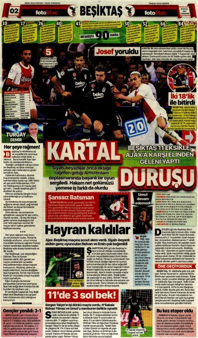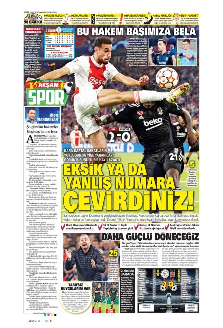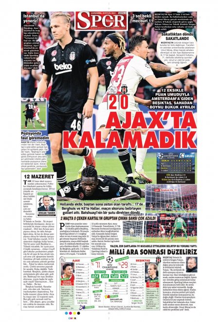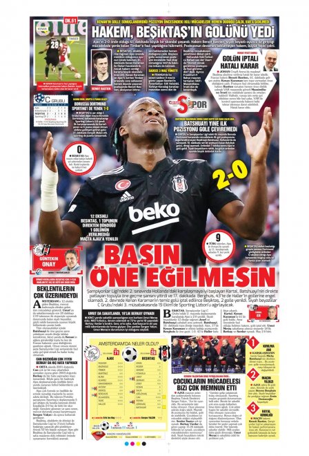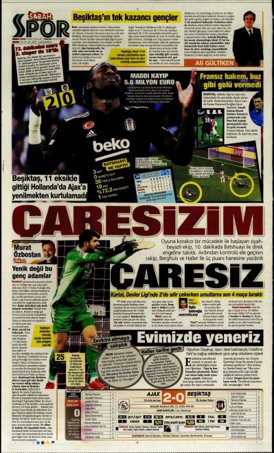 UEFA Şampiyonlar Ligi C Grubu 2. maçında Beşiktaş, Hollanda'nın Ajax takımı ile oynadığı maçtan 2-0'lık mağlubiyetle ayrıldı. Siyah-beyazlı taraftarın son gelişmelere kısaca göz gezdirmesi için, Beşiktaş haberlerini derledik:
