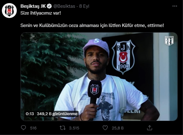 "Senin ve Kulübümüzün ceza almaması için lütfen Küfür etme, ettirme!"