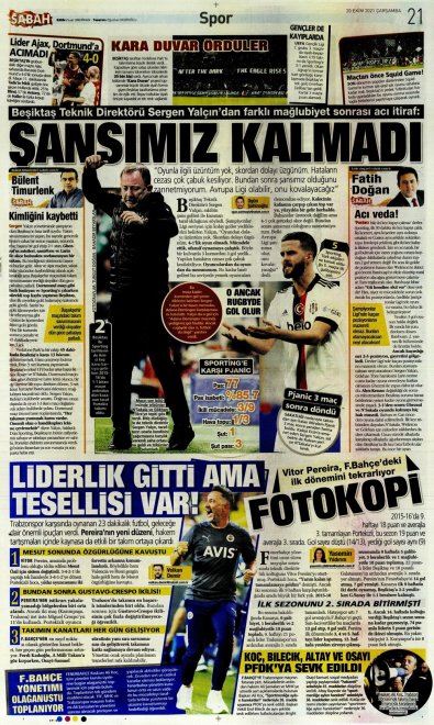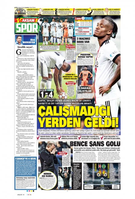 Siyah-beyazlı taraftarın kısaca göz gezdirmesi için, gazetelerin spor sayfalarında yer alan Beşiktaş haberlerini derledik: