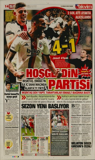 Siyah-beyazlı taraftarın kısaca göz gezdirmesi için, 10 Nisan Pazar günü Beşiktaş hakkındaki gazete manşetlerini derledik...