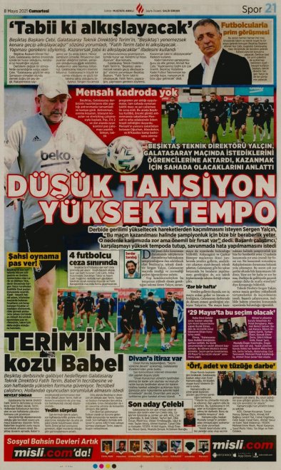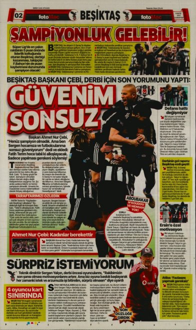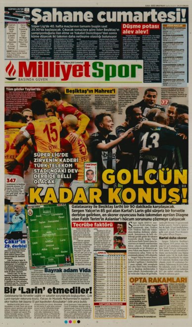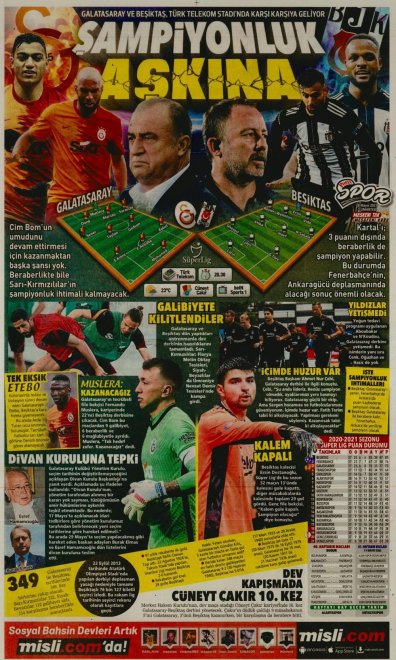 Bu akşam Galatasaray - Beşiktaş karşı karşıya gelecek. Nefesler tutuldu ve dev derbi için geri sayım başladı. Gazeteler"inde spor sayfaları dev derbi öncesi Beşiktaş'ı yazdı...