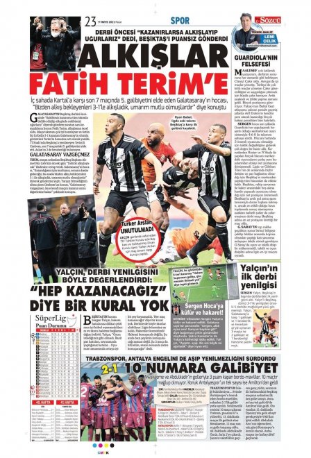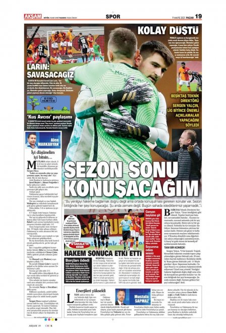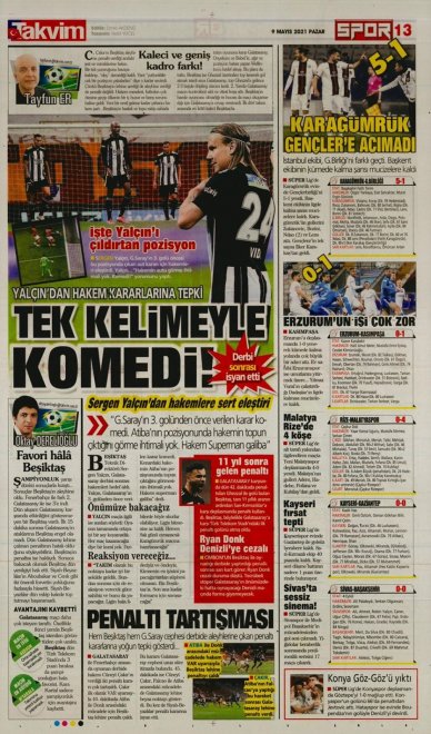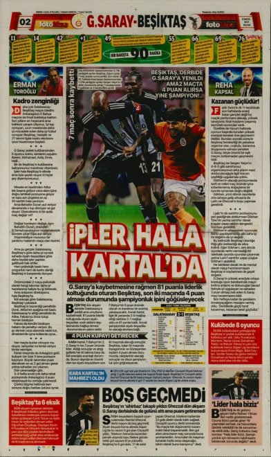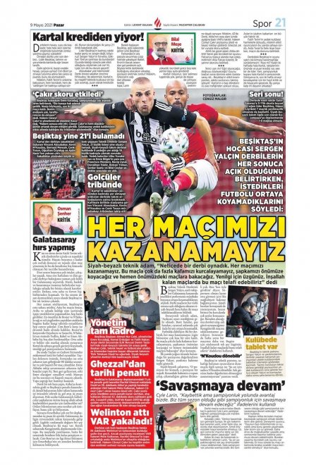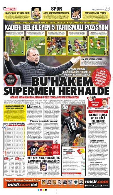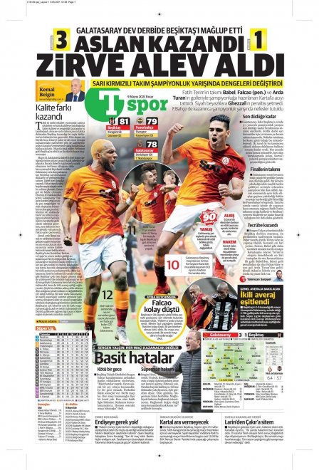 Süper Lig’in 40. haftasında, Türk Telekom Stadı’nda Galatasaray ile karşılaşan Beşiktaş, 3-1 mağlup oldu. 9 Mayıs Pazar günü gazetelerde derbinin sonucu geniş yer aldı. İşte Beşiktaş haberleri: