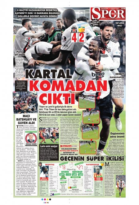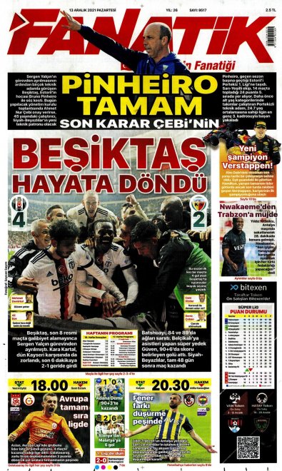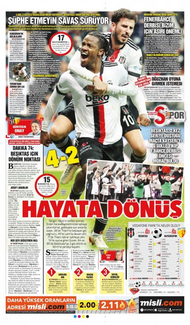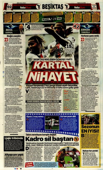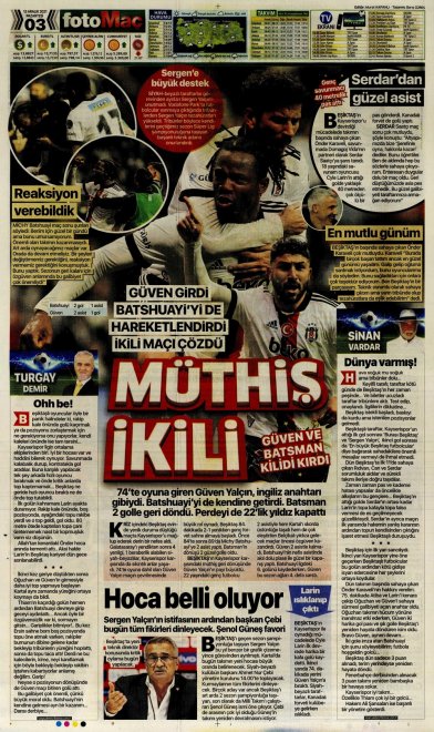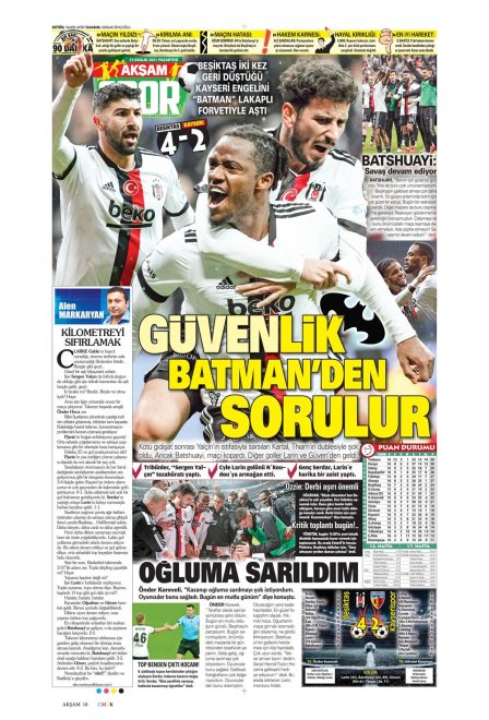 Dün akşam siyah-beyazlı taraftar 4-2'lik galibiyetin sevincini yaşadı. Bugünkü Beşiktaş haberlerine kısaca göz gezdirmeniz için, gazete manşetlerini derledik: