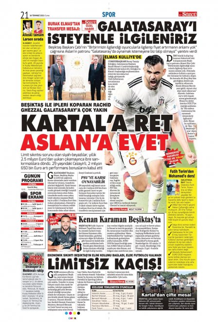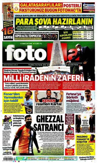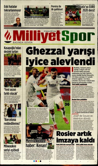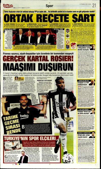 İşte, siyah-beyazlı taraftarın kısaca göz gezdirmesi için 16 Temmuz Beşiktaş manşetleri: