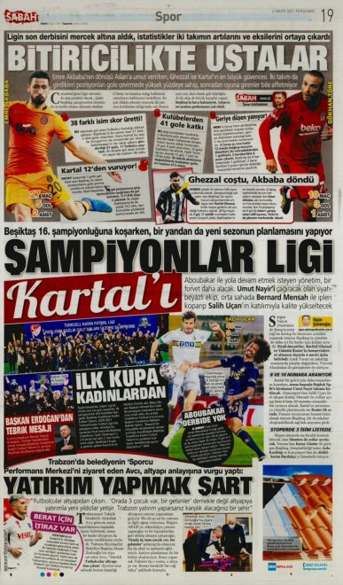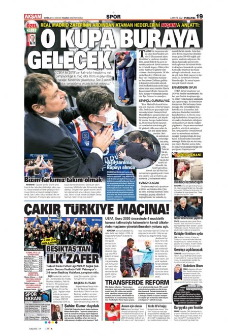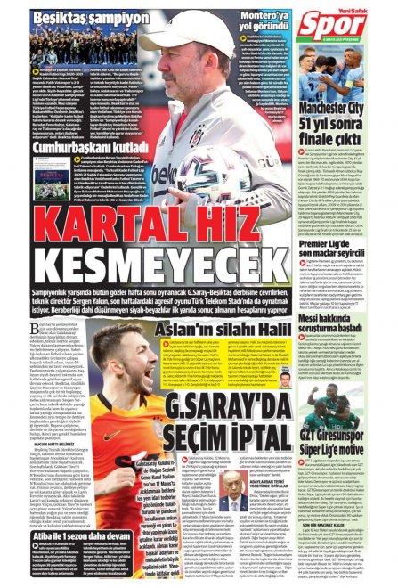 Gazetelerin spor manşetlerinde 6 Mayıs Perşembe günü Beşiktaş'ın ilk kupası, Beşiktaş Vodafone Takımı'nın şampiyonluğuna yer verildi. Ayrıca, siyah-beyazlılardaki son gelişmeler de geniş yer buldu.