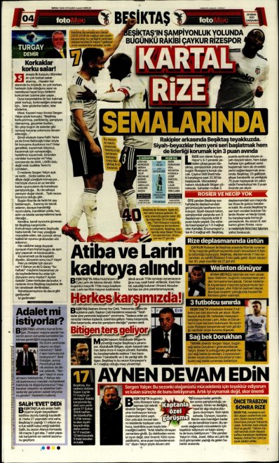 Şampiyonluk yarışının en güçlü adayı Beşiktaş ili ilgili bugün de gazete manşetlerinde geniş yer verildi. İşte 28 Nisan Çarşamba Beşiktaş manşetleri: