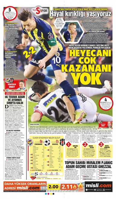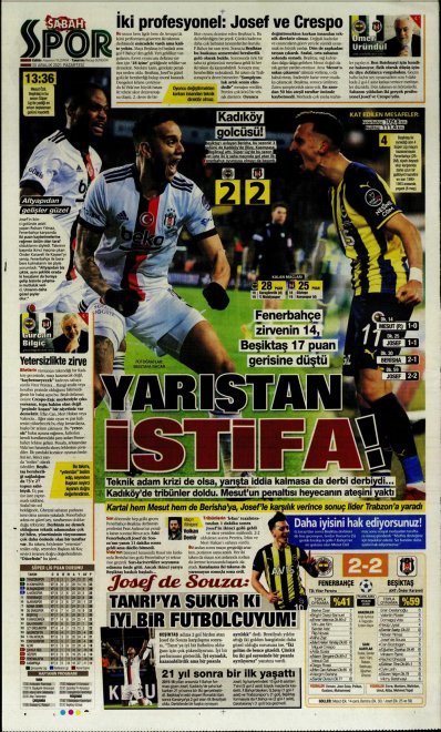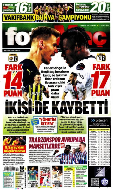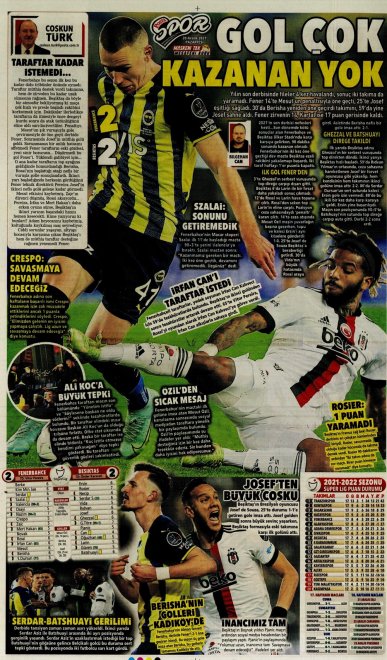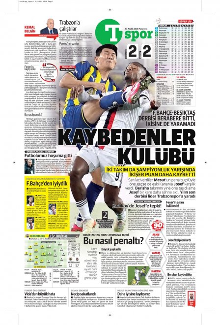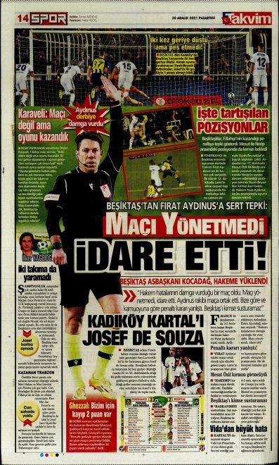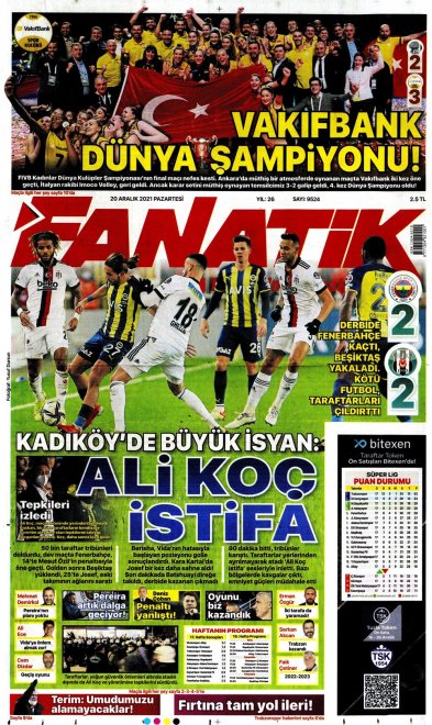 Manşetlerle Fenerbahçe-Beşiktaş maçı! (20 Aralık)