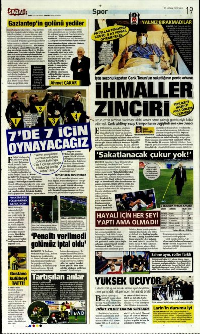 Sabah Gazetesi Beşiktaş muhabiri Ogün Şahinoğlu, "İhmaller Zinciri" başlıklı haberinde, şunları yazdı: