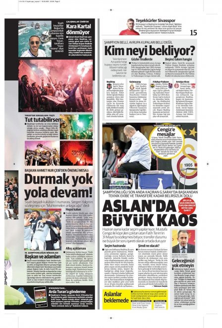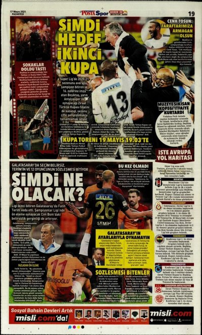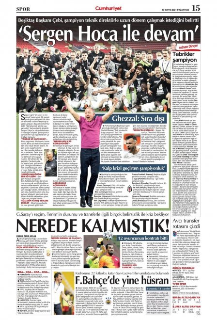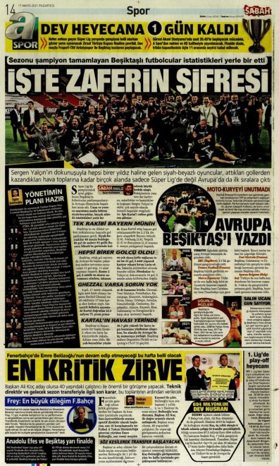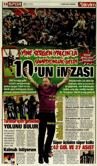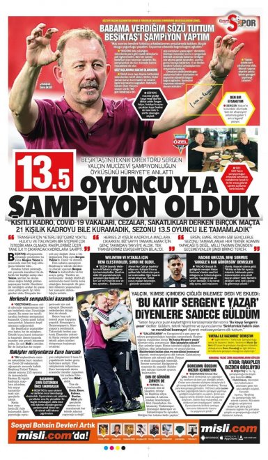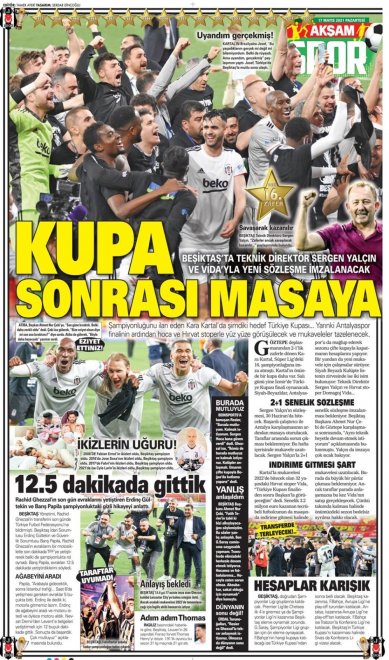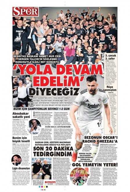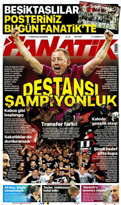 Gazetelerin spor sayfalarında Beşiktaş Teknik Direktörü Sergen Yalçın manşetlerde yer aldı. İşte 17 Mayıs Pazartesi Beşiktaş manşetleri: