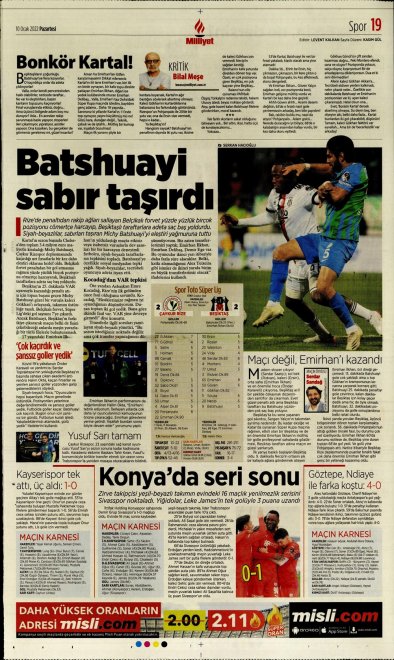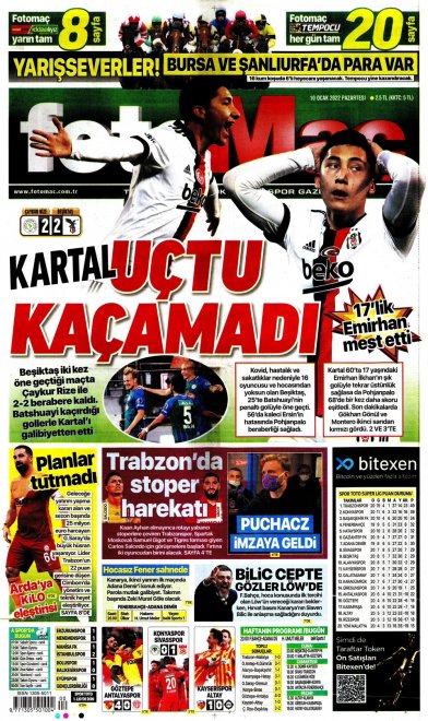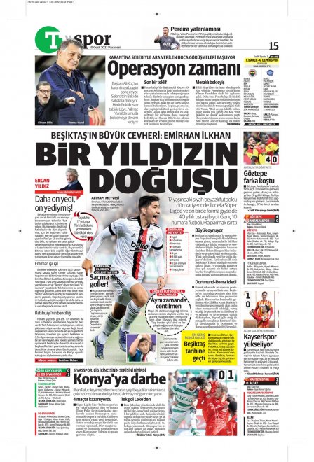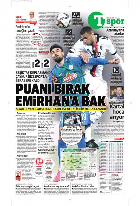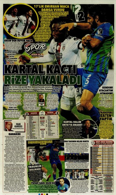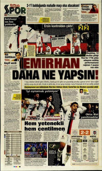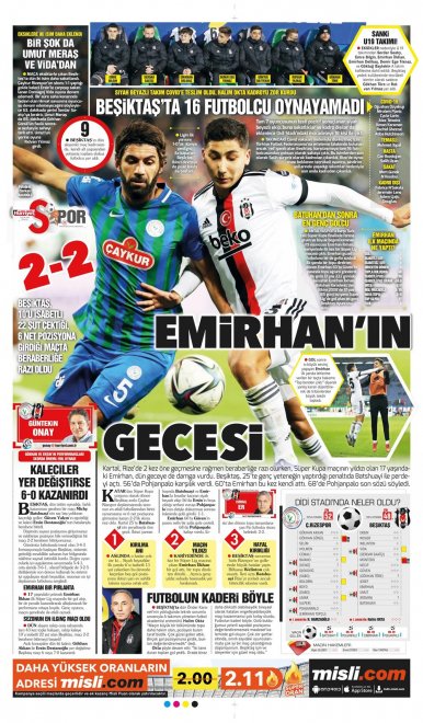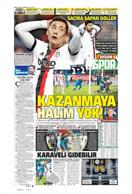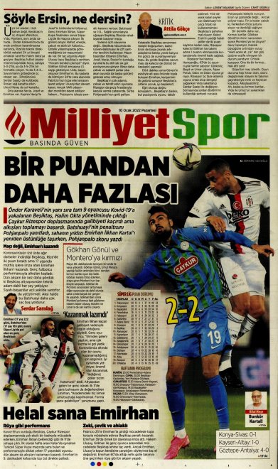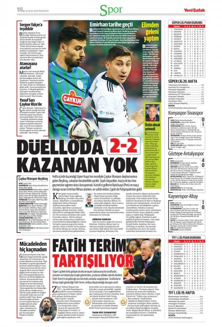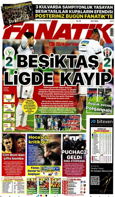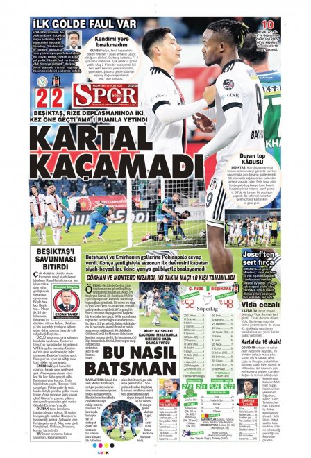 Spor Toto Süper Lig'in 20. haftasında, Beşiktaş Rizespor'la 2-2 berabere kaldı. Maçın ardından sizler için derlediğimiz günün spor manşetleri...