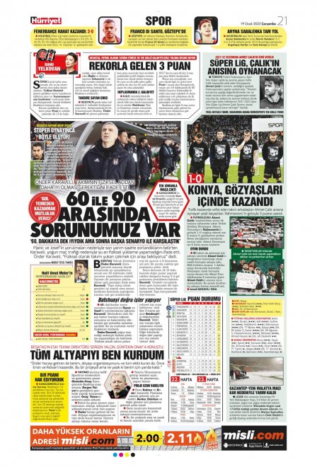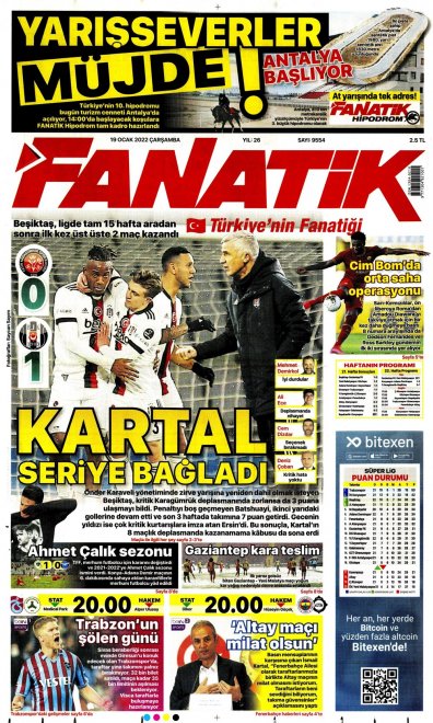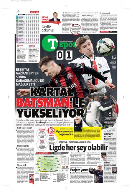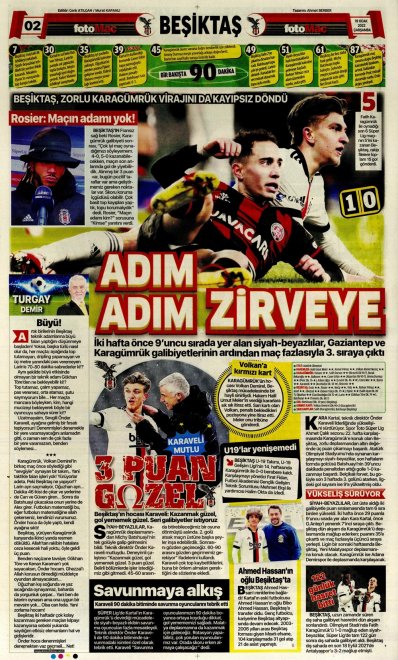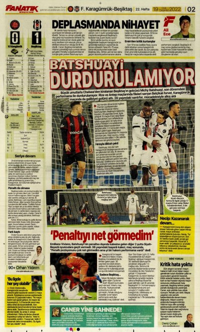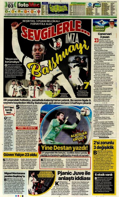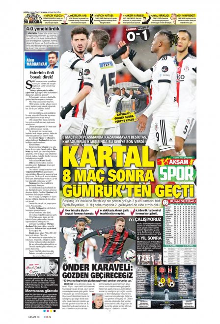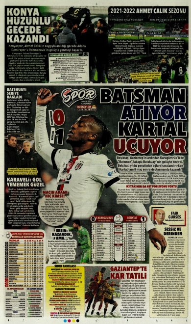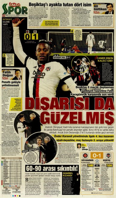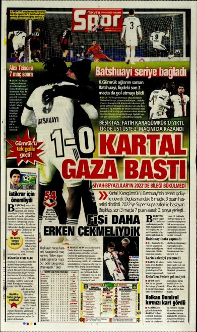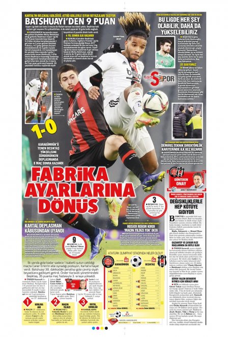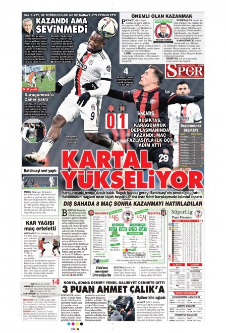 Atatürk Olimpiyat Stadyumu'nda, Beşiktaş'ın Karagümrük karşısında Batshuayi ile 1-0'lık öne geçtiği maçın ardından gazetelerde yer alan günün spor manşetlerini derledik.