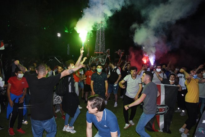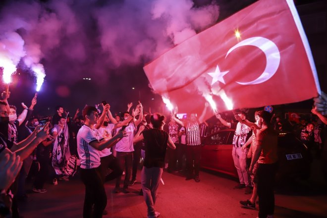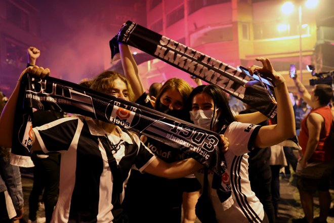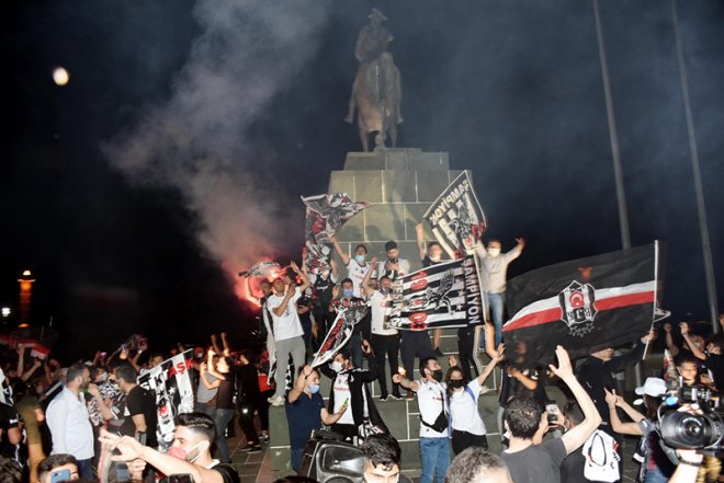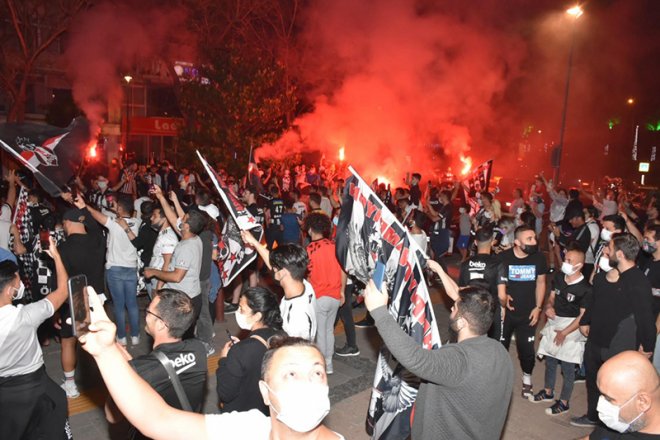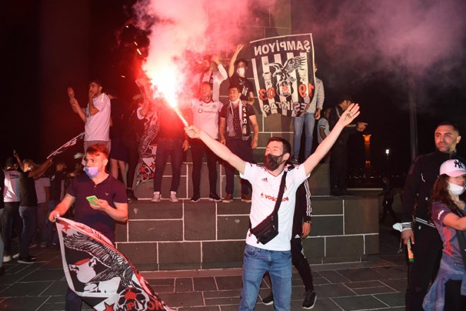 Beşiktaş taraftarı, Süper Lig'de kazanılan 16. şampiyonluğu coşku içerisinde kutluyor. Medyadan edinilen bilgilere göre; kimi taraftarlar pandemi nedeniyle kutlamalara evinin balkonundan eşlik ederken bazıları caddelere indi. İşte yurdun dört bir yanından yansıyan renkli kareler...