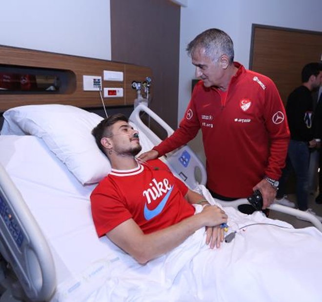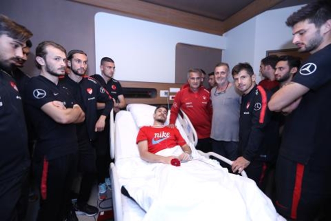 Acıbadem Fulya Hastanesi'nde gerçekleşen ziyarette, A Milli Takım Teknik Direktörü Şenol Güneş tedavisi Birkaç ay sürecek olan 23 yaşındaki futbolcuyu teselli etti ve acil şifalar diledi. Dorukhan, Güneş ve Belözoğlu'nun kendisiyle yaptığı konuşma sırasında duygulandı.