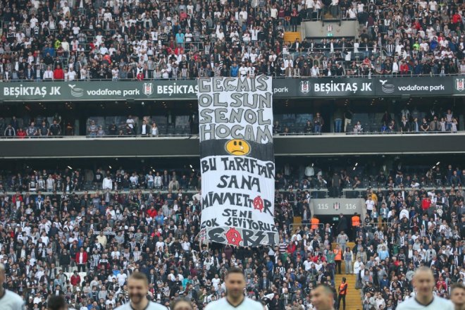 Fenerbahçe-Beşiktaş maçında sahaya atılan yabancı madde tarafından başından yaralanan Beşiktaş Teknik Direktörü Şenol Güneş’e siyah-beyazlı taraftar maçtan önce sevgi gösterileri gerçekleştirerek geçmiş olsun dileklerini ilettiler. Şenol Güneş’te taraftarın bu ilgisine selamlayarak karşılık verdi.