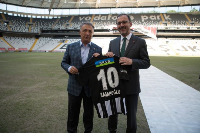 Başkan Ahmet Nur Çebi, sıcak bir ortamda geçen ziyarette, Gençlik ve Spor Bakanı Dr. Mehmet Muharrem Kasapoğlu ile konuk bakanlara isimlerinin yazılı olduğu Beşiktaş formaları hediye etti.
