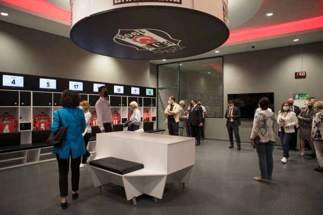Ziyaret, konuk bakanların Beşiktaş JK Müzesi’ni ziyaretiyle başladı. Müze Danışmanı Zülal Gök, müzemizde yer alan kupalar ve tarihi objeler hakkında konuklara bilgiler verdi. Konuk bakanlar daha sonra Vodafone Park’ı gezdi ve basın toplantı salonunda Vodafone Park’ın yapım aşamalarını anlatan tanıtım filmini izledi.