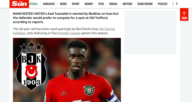 Öte yandan The Sun'da Beşiktaş ve Axel Tuanzebe hakkında haber yayınladı: