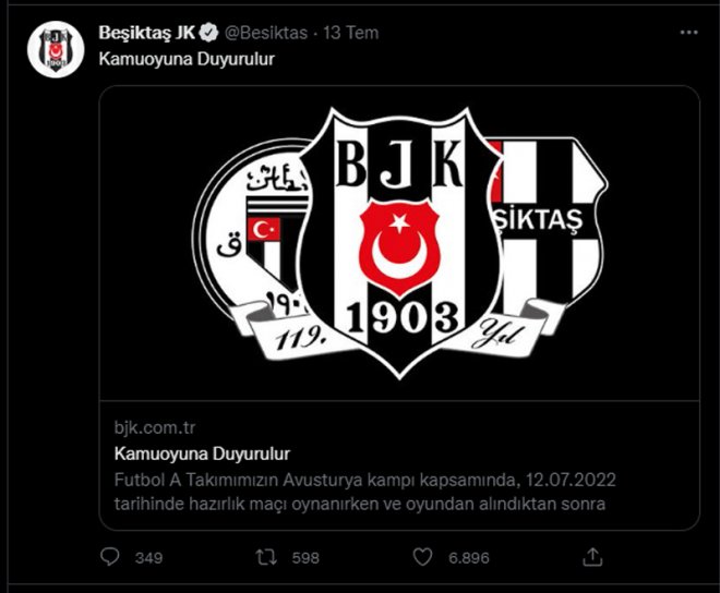 Beşiktaş'tan yapılan açıklamada aşağıdaki ifadeler kullanıldı: