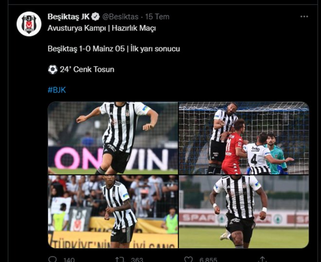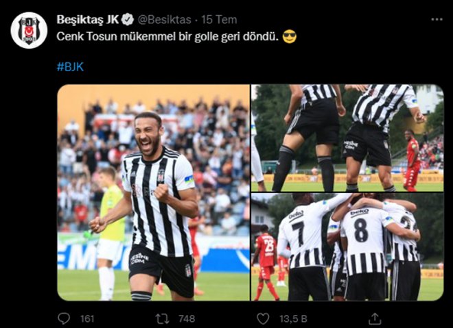 Siyah-beyazlı kulüpten yapılan açıklamada şu ifadelere yer verildi: "2022-23 sezonu için satışa çıkan kombine biletlerimize yoğun ilgi göstererek 2 saat içinde tükenme noktasına getiren taraftarlarımıza teşekkür ediyor, kombine bilet almak isteyen taraftarlarımızı tükenmeden kombine bilet almaya ve yeni sezonda tüm güçleriyle futbol takımımızın yanında olmaya davet ediyoruz."
