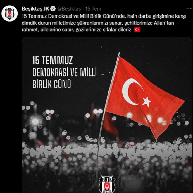 Beşiktaş'tan 15 Temmuz Demokrasi ve Milli Birlik Günü mesajı!
