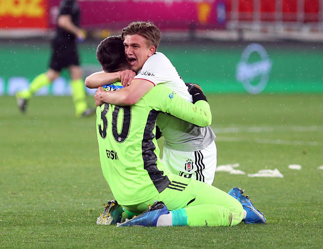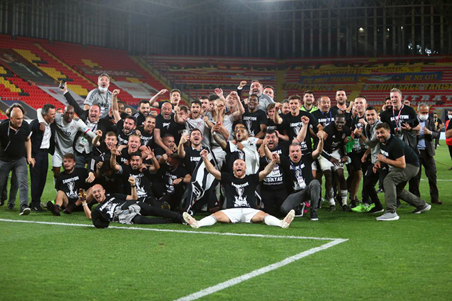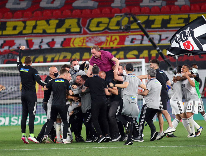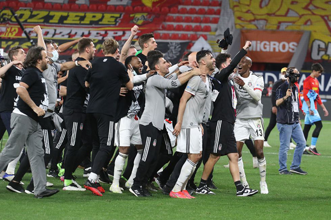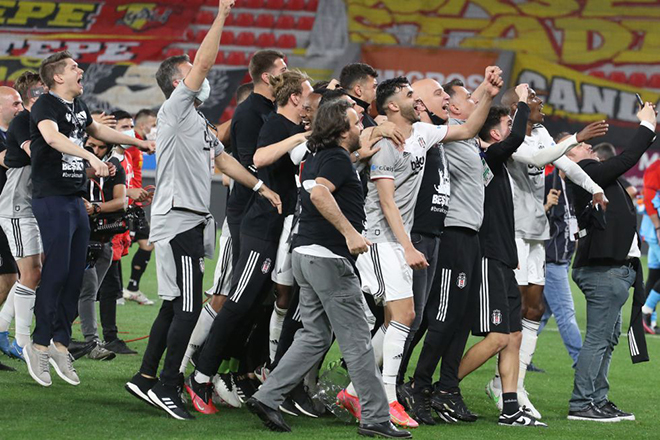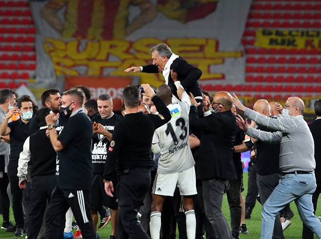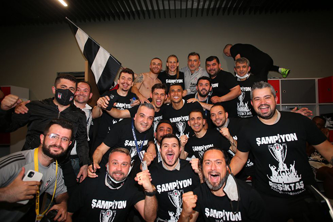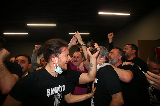 Başkan Ahmet Nur Çebi ile Teknik Direktör Sergen Yalçın omuzlarda taşınırken, futbolcular, giydikleri “Şampiyon Beşiktaş” yazılı tişörtler ve ellerinde bayraklarla Gürsel Aksel Stadyumu’nun çimleri ve soyunma odasında büyük bir coşku ve mutlulukla şampiyonluğu kutladı.