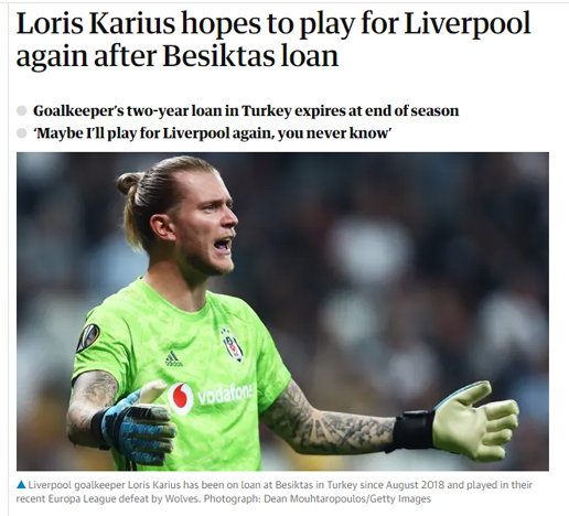 Geçen sezon Beşiktaş'a Liverpool'dan iki sezonluğuna kiralık olarak transfer olan Loris Karius, İngiliz basınından The Guardian'a konuştu. Sezon sonu kiralık sözleşmesi sona erecek olan Loris Karius, verdiği röportajda geleceği hakkında konuştu. Alman kaleci, "Beşiktaş ile sezon sonuna kadar sözleşmem sürüyor. Sözleşmem bittikten sonra belki Liverpool'a geri dönerim. Belki İngiltere başka bir takıma gidebilirim. Henüz onu bilmiyorum." ifadelerini kullandı.
