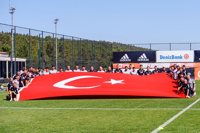 BJK Nevzat Demir Tesisleri’nde yeni sezon hazırlıklarını sürdüren Beşiktaş, dün sabah yaptığı antrenman öncesinde, Ay-Yıldızlı bayrağın etrafında bir araya gelerek 30 Ağustos Zafer Bayramı’nı kutladı.