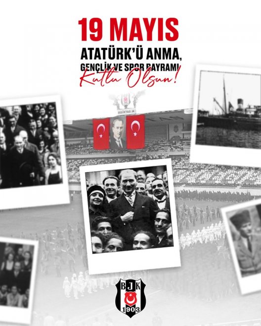 Beşiktaş JK, 19 Mayıs Atatürk'ü Anma, Gençlik ve Spor Bayramı'nı Twitter hesabından yaptığı paylaşımla kutladı: