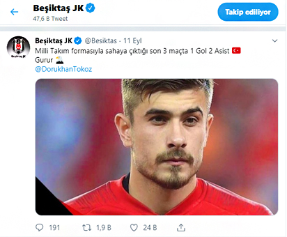 Paylaşımda "Milli Takım formasıyla sahaya çıktığı son 3 maçta 1 gol, 2 asist" ifadeleri kullanılırken 'gurur' başlığı atıldı. Dorukhan da maçtan sonra yaptığı açıklamada "Yeni jenerasyon olarak çok iyi anlaşıyoruz. Çok iyi arkadaşlıklarımız var. Direkt şampiyonaya gitmek için elimizden geleni yapıyoruz. Ülkemizin de yüzünü kara çıkarmadan inşallah turnuvaya gideceğiz" ifadelerini kullanmıştı.