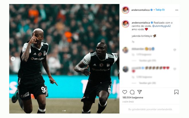 Siyah-Beyazlı formayı 2016-18 yıllarında başarıyla giyen ve takımla 1 Süper Lig şampiyonluğu yaşayan Anderson Talisca, son günlerde sosyal medya hesabından yaptığı paylaşımlarla Beşiktaşlı taraftarları heyecanlandırmıştı.