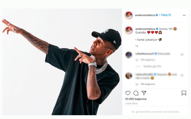 Zaman zaman geri döneceği konuşulan Talisca, sosyal medyada yaptığı paylaşımlarla taraftarları heyecanlandırırken, amacının aslında takipçi kazanmak olduğu iddia edilmişti. Brezilyalı futbolcu, Beşiktaş'la ilgili gönderileri nedeniyle Beşiktaşlı taraftarlardan çok sayıda yorum alıyor.