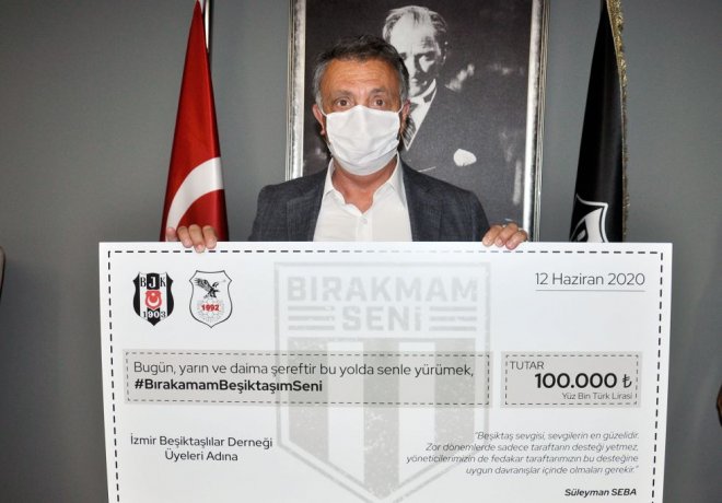 İzmir Beşiktaşlılar Derneği Başkanı İnan Esen, ‘Bırakmam Seni’ kampanyası bağış çekini Beşiktaş JK Başkanı Ahmet Nur Çebi'ye takdim etti. Siyah-beyazlı kulübün web sitesinden edinilen bilgilere göre; İzmir Beşiktaşlılar Derneği, Kulübün ekonomik bağımsızlığa kavuşması amacıyla düzenlenen ‘Bırakmam Seni’ kampanyasına 100 bin Türk Lirası bağışta bulundu.