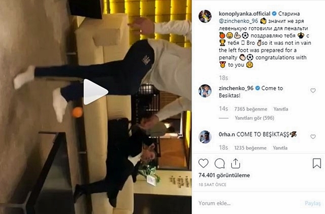 Transfer çalışmalarında Beşiktaş'ta son olarak Yevhen Konoplyanka olmuştu. Schalke'de forma giyen Ukraynalı futbolcuya, Manchester City'de forma giyen Zinchenko “Come to Beşiktaş” mesajını yazdı. Genç yıldızın yorum bölümüne “Come to Beşiktaş” yazması, siyah-beyazlı taraftarları heyecanlandırdı. Geçtiğimiz günlerde Beşiktaş İkinci Başkanı Serdal Adalı'nın Yevhen Konoplyanka hakkında açıklamalarda bulunması, merakları daha da arttırdı.