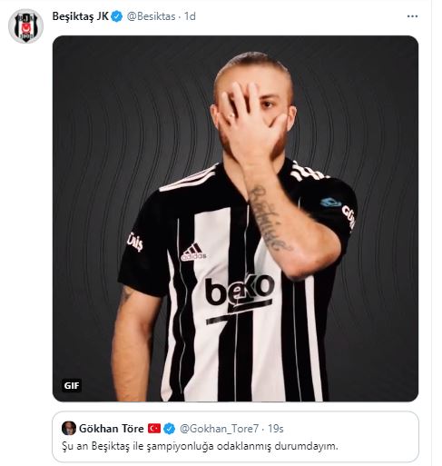 Beşiktaş JK'de, Gökhan Töre'nin bu paylaşımını kendi sayfasında paylaştı.
