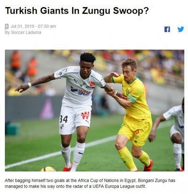 Fransız ekibi Amiens'te forma giyen Güney Afrikalı futbolcu Bongani Zungu ile Beşiktaş'ın ilgilendiği ancak, kulübün 26 yaşındaki futbolcuyu bırakıp bırakmayacağının kesinleşmediği ifade edildi. Öte yandan Bongani Zungu'nun Instagram hesabından Beşiktaş ile Galatasaray'ı takip etmesi de bu iddiaları kuvvetlendirdi.