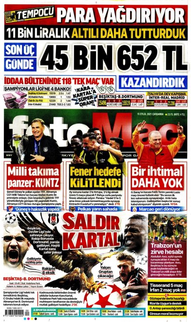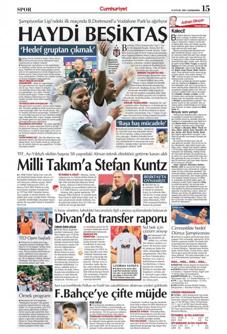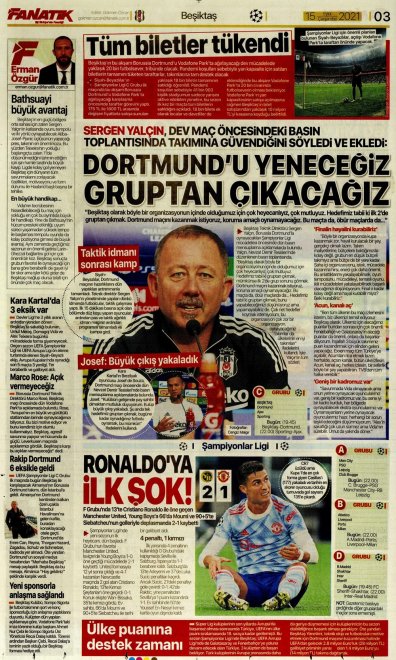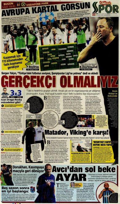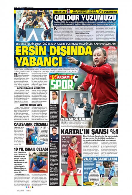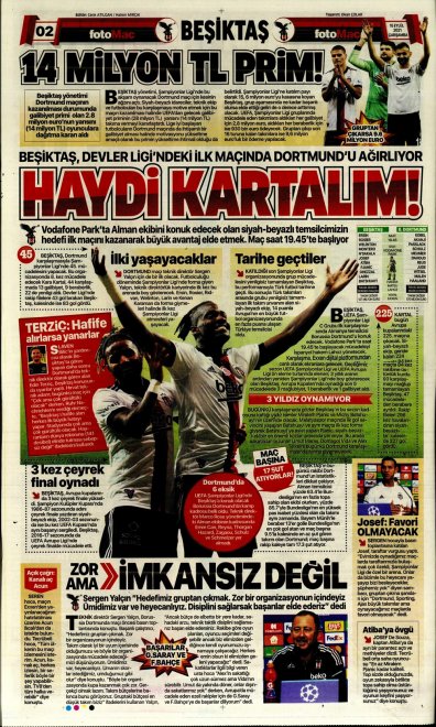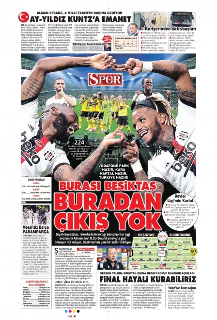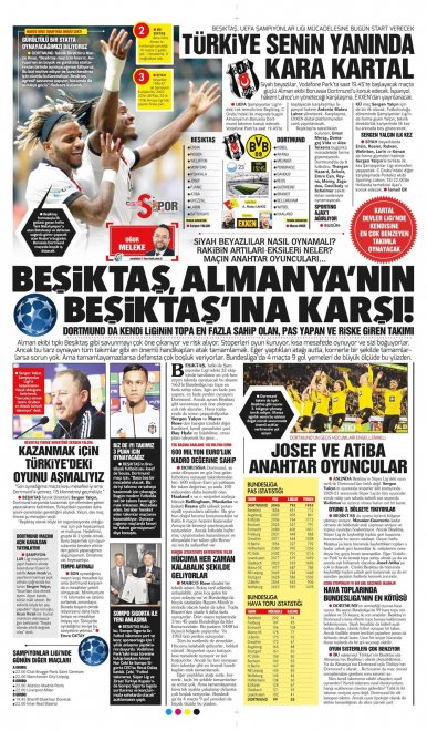Beşiktaş, UEFA Şampiyonlar Ligi’nde B. Dortmund ile bu akşam Vodafone Park'ta 19:45'te karşı karşıya gelecek. Gazetelerin spor sayfaları, siyah-beyazlıları yazdı... Taraftarların kısaca göz gezdirmesi için Beşiktaş manşetlerini derledik: