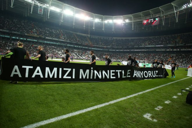 Beşiktaş, maç başlamadan önce sahaya "Atamızı minnetle anıyoruz..." yazılı pankartla çıktı.