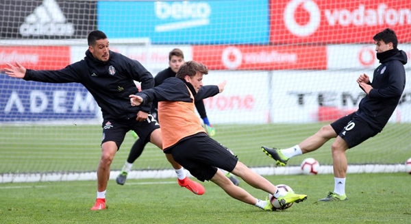 Yarım sahada 3 takım halinde turnuva maçları yapan siyah-beyazlıların antrenmanı, şut çalışması ile sona erdi.