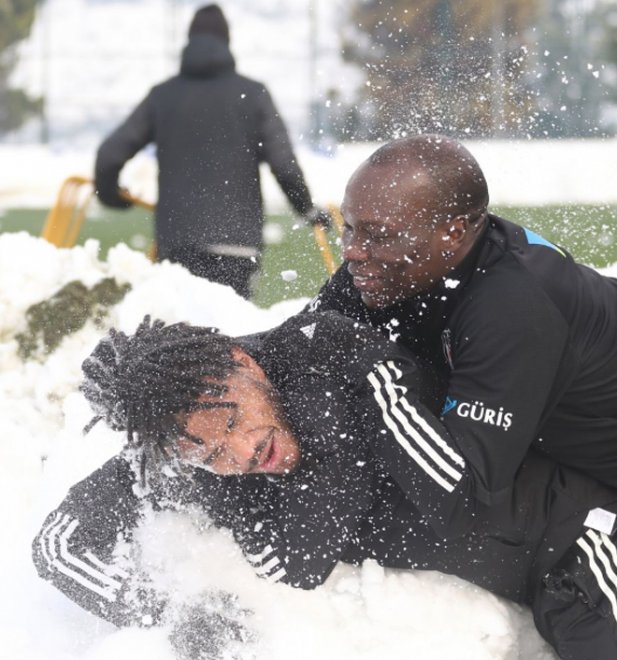 Beşiktaş’ta keyifler yerinde… Siyah-beyazlılar, Karagümrük maçı hazırlıklarını sürdürürken futbolcular önce karda oynadı. İdman sonrası ise kendileri için hazırlanan mangalda stres attı.
