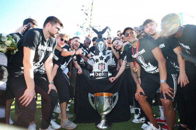 Üzerinde şampiyonluk kupasının yer aldığı pastayı kesen siyah-beyazlılar, yolculuk boyunca bol bol hatıra fotoğrafı çekerek yaşadıkları muhteşem anları ölümsüzleştirdi.